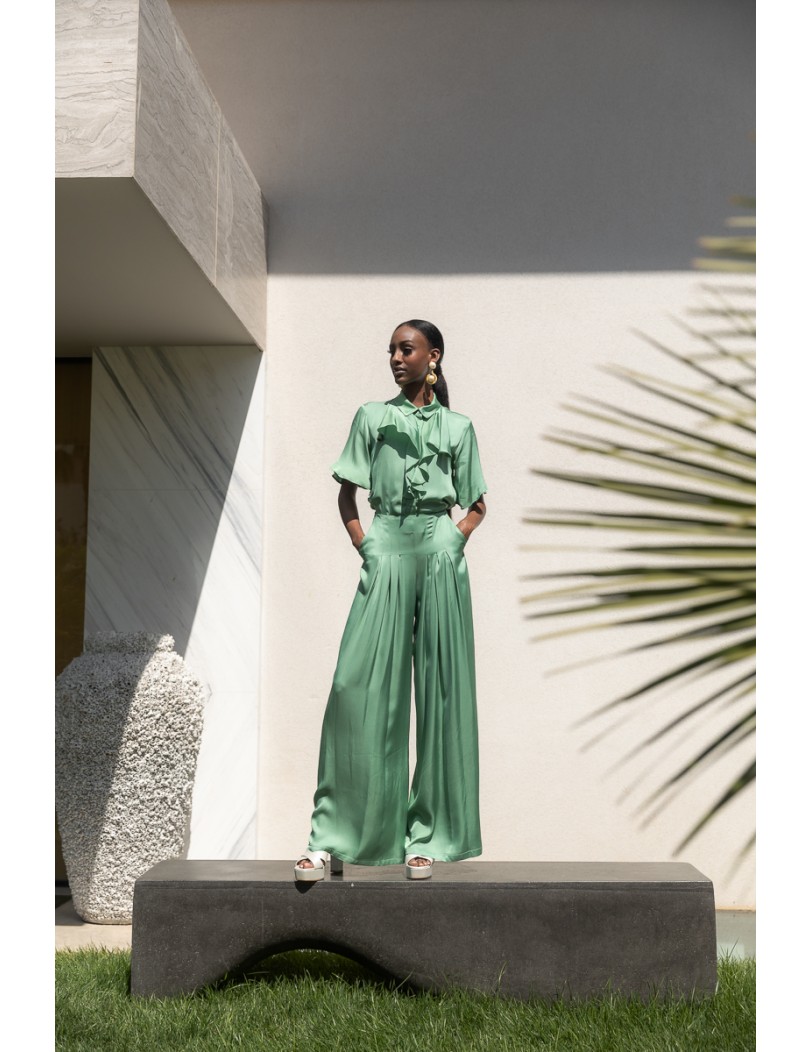 Αναδείξτε το στυλ σας με αυτό το κομψό πουκάμισο με βολάν και κοντό μανίκι. Ένα άνετο και μοντέρνο κομμάτι που μπορεί να φορεθεί όλες τις ώρες της ημέρας, από το πρωί στο γραφείο μέχρι τη βραδινή σας έξοδο.