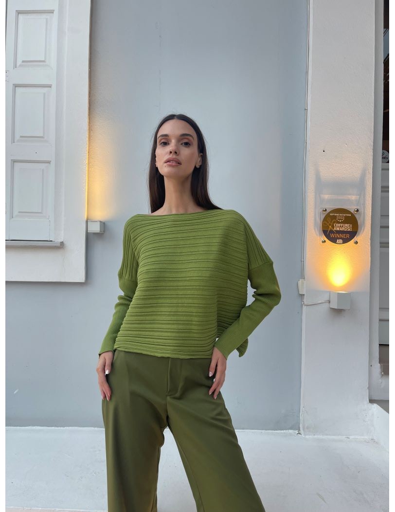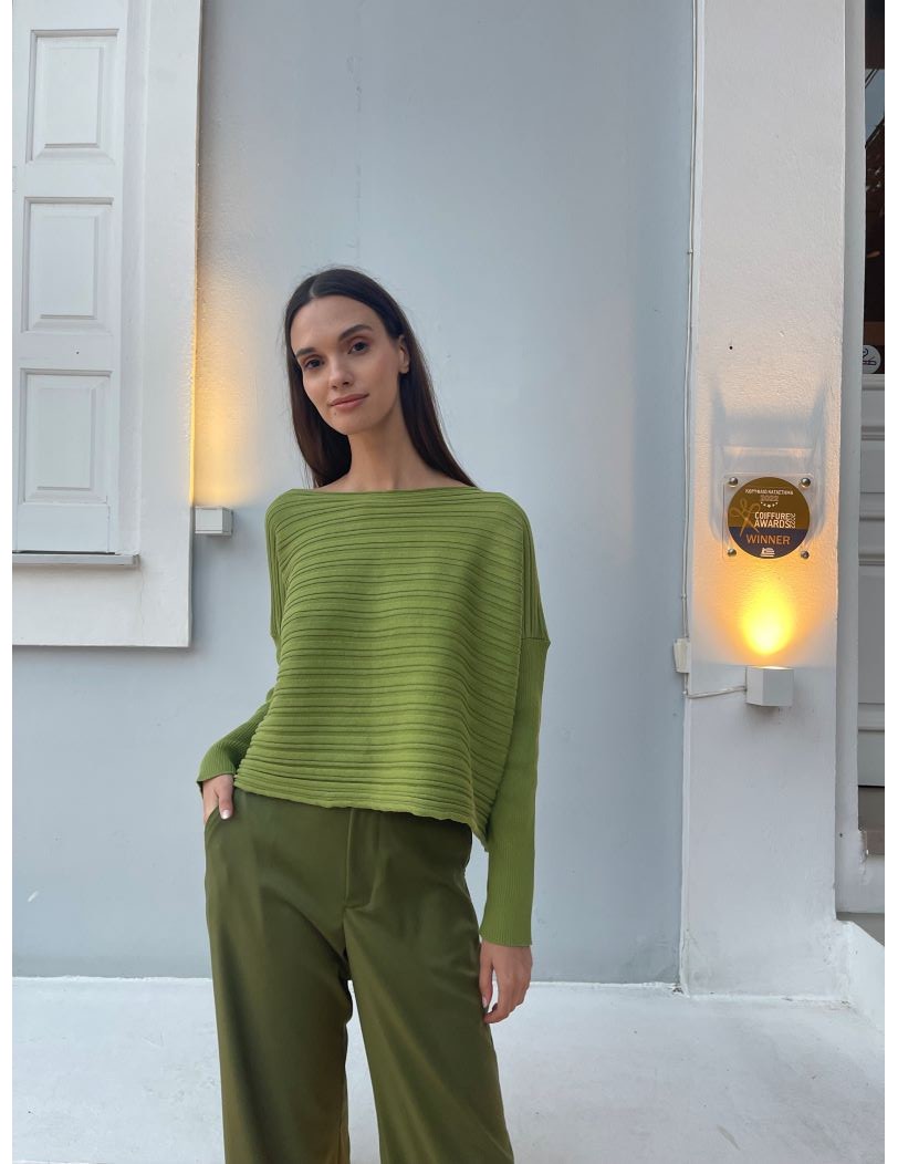 Victoria-πράσινη Πλεκτή Βαμβακερή Μπλούζα με Απαλή Υφή