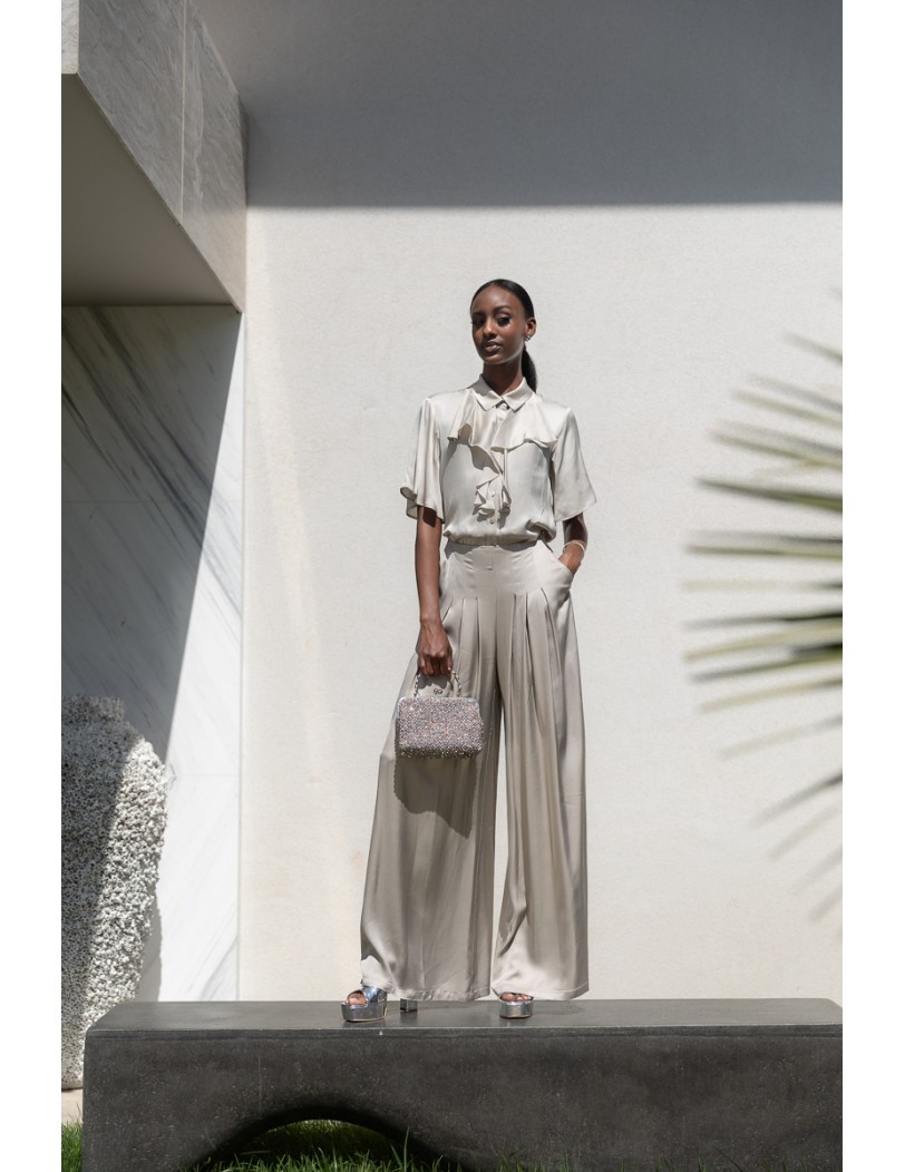 Elevate your style with this elegant shirt featuring ruffles and short sleeves. A versatile and comfortable piece, perfect to wear all day long — from the office to an evening outing.