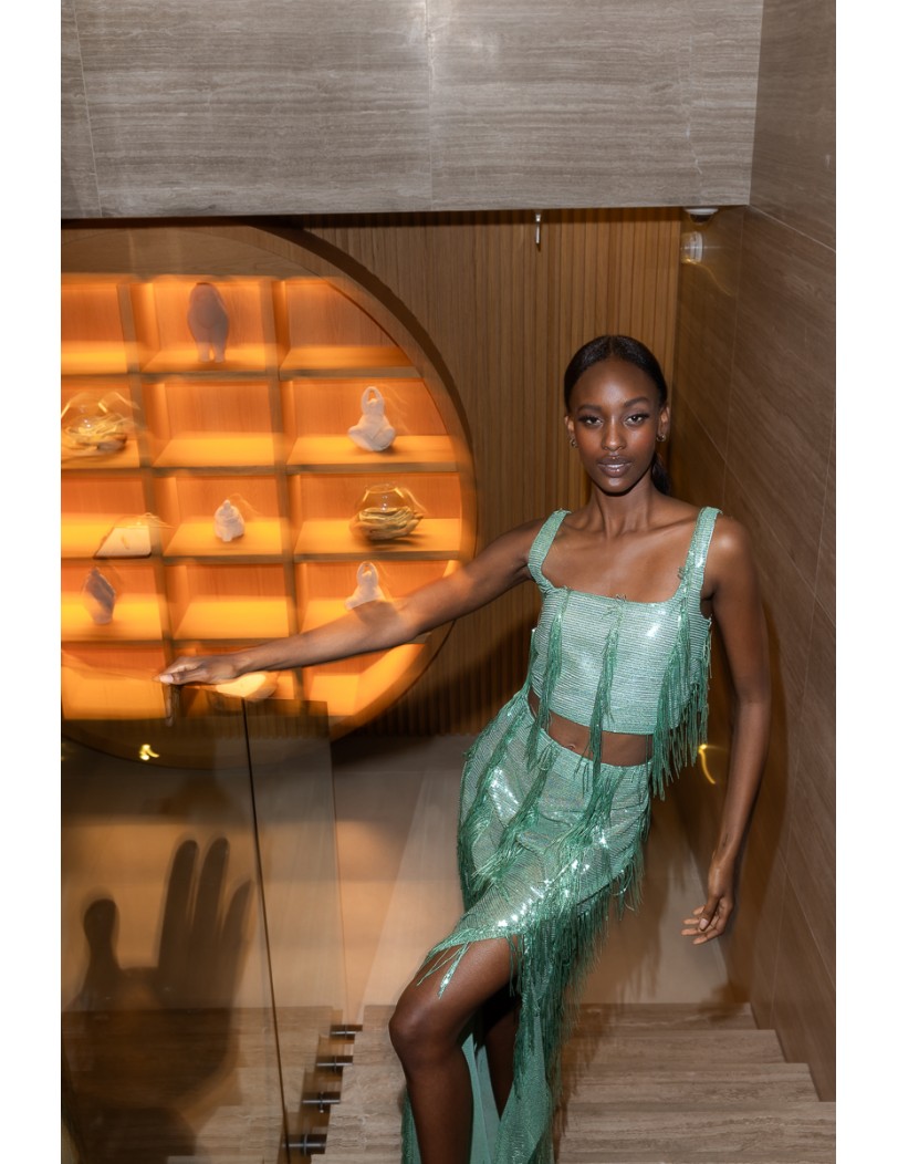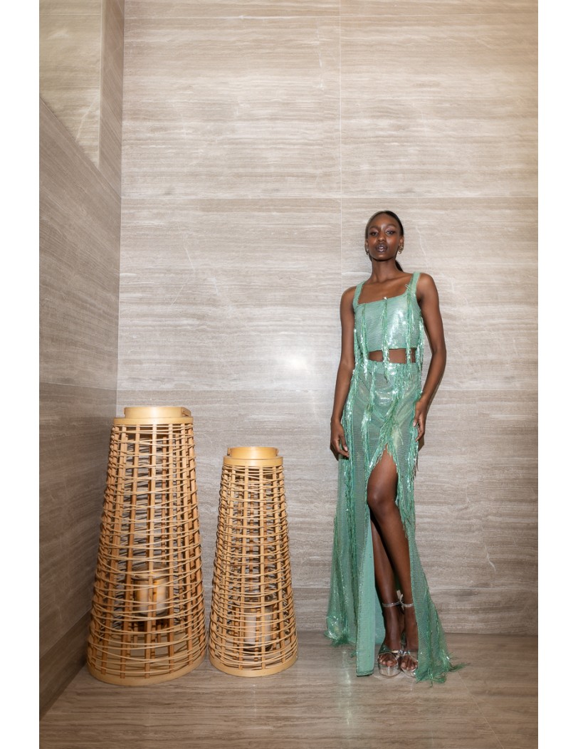 Make a statement with this stunning sequin skirt with lining and back zipper. Perfect for modern and stylish looks, it offers comfort thanks to the lining and a flawless fit with the back zipper. Its sparkling fabric ensures you stand out on any evening outing or special occasion.
