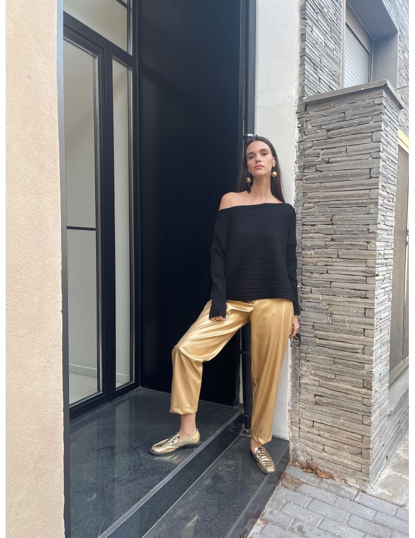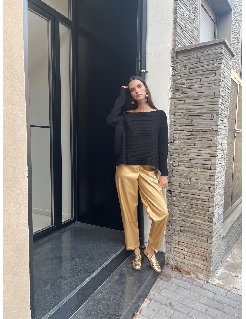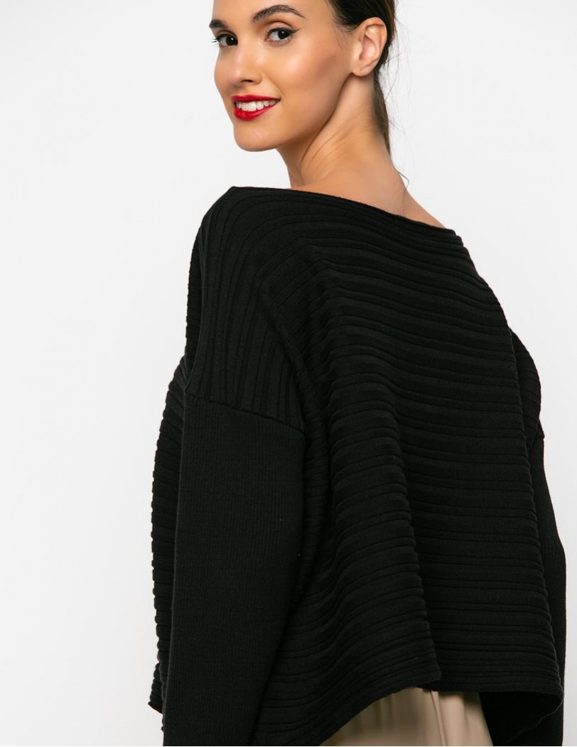 Victoria-black Knitted Cotton Blouse with Soft Texture
